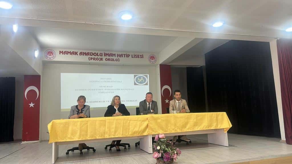 2025-2026 Eğitim Öğretim Yılı Sene Başı Mamak Ve Elmadağ Bölgesi Rehber Öğretmenler/Psikolojik Danışmanlar Toplantısı, Mamak Kaymakamı Sayın Mehmet Nebi Kaya, İlçe Milli Eğitim Müdür Vekili Sayın Hasan Fehmi Er, İlçe Milli Eğitim Özel Eğitim Ve Rehberlik Şube Müdürü Sayın Ahmet Fevzi Özdemir Ve Mamak Anadolu İmam Hatip Lisesi Müdürü Sayın Şahin Yalçın’ın Değerli Katılımlarıyla, Mamak Rehberlik Ve Araştırma Merkezi Müdürü Sayın Gani Peker Başkanlığında, Mamak Anadolu İmam Hatip Lisesi’nde Gerçekleştirildi.